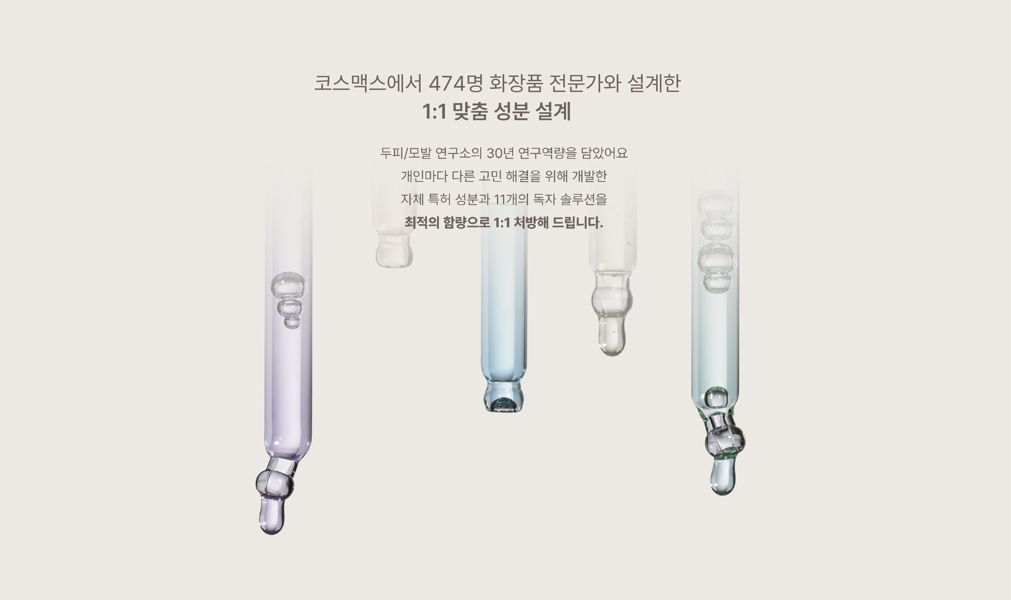 설문과 유전자 데이터를 기반으로한 1:1 맞춤형 AI처방과 ON-DEMAND 생산 기술을 활용하여 각각의 피부타입과 문제에 따라